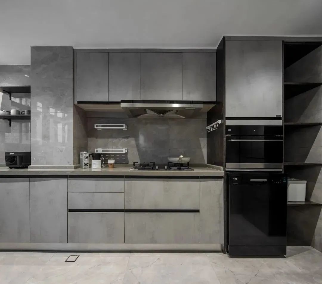 厨房的设计将生活美学融入其中,让厨房成为了生活中的独特风景,厨房设计以灰色为主,尽显高端大气。吊柜安装升降拉篮让生活更加便利。