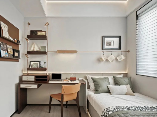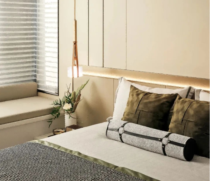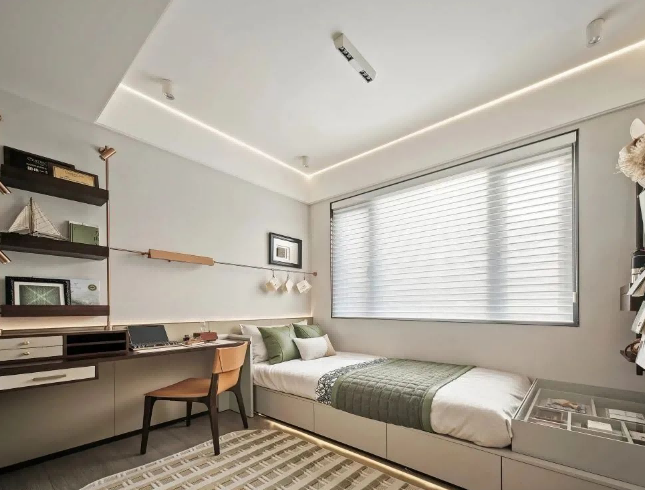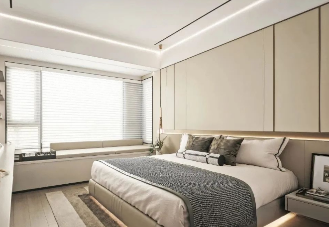 卧室开阔的窗户,将光线引入室内,使整个空间显得明亮而宽敞。当清晨的第一缕阳光透过窗户洒在床上时,便能感受到一股温馨和安逸的气息。